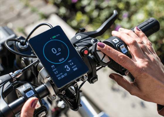 The classic control interface (supplied as standard) offers a motorcycle experience with a twist grip for acceleration and hand-activated braking.