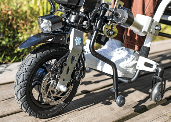 A great solution for a variety of mobility purposes. Whether it is around town or along a forest trail, this model is for you. The big 16” drive wheel eats up the bumps for a really smooth ride. Get your PAWS on the track and easily overcome the obstacles in the terrain.