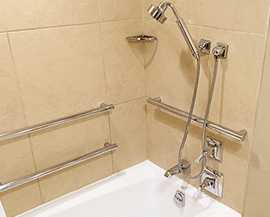 Many changes can be made quickly to accommodate your needs without having to redesign your home. Examples may include installing grab-rails on bathroom walls and movable cabinets under the sink so that someone in a wheelchair can use the space.